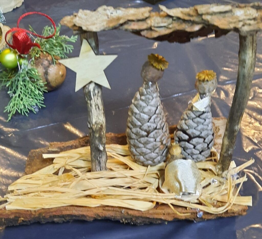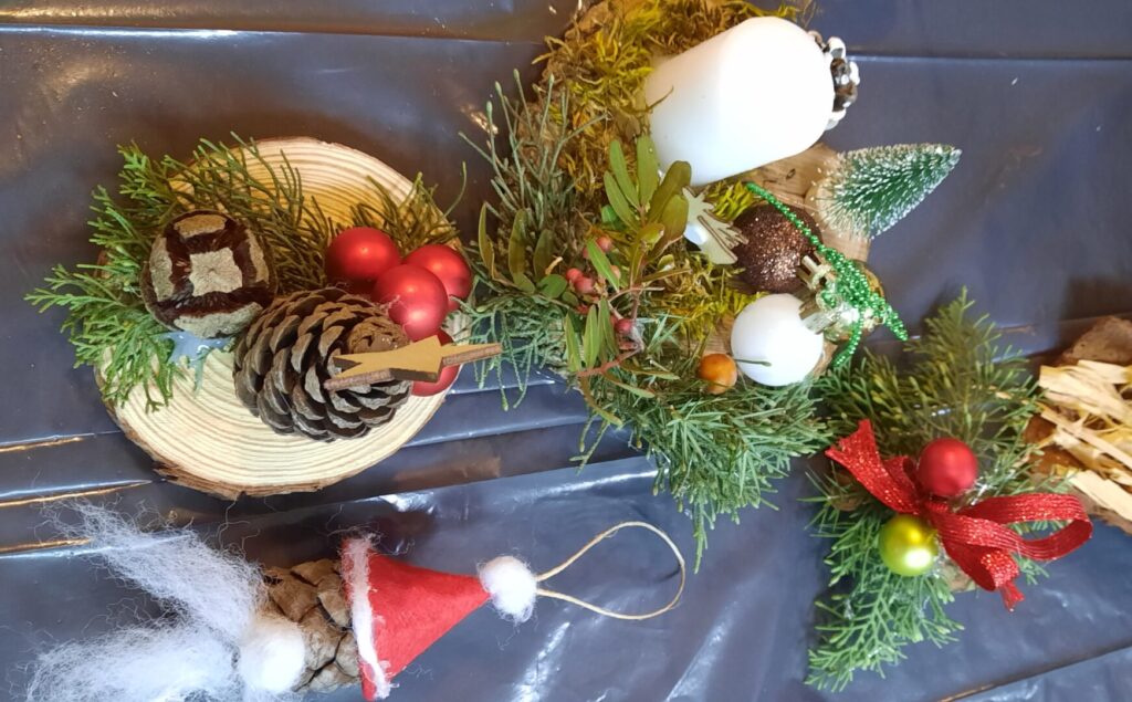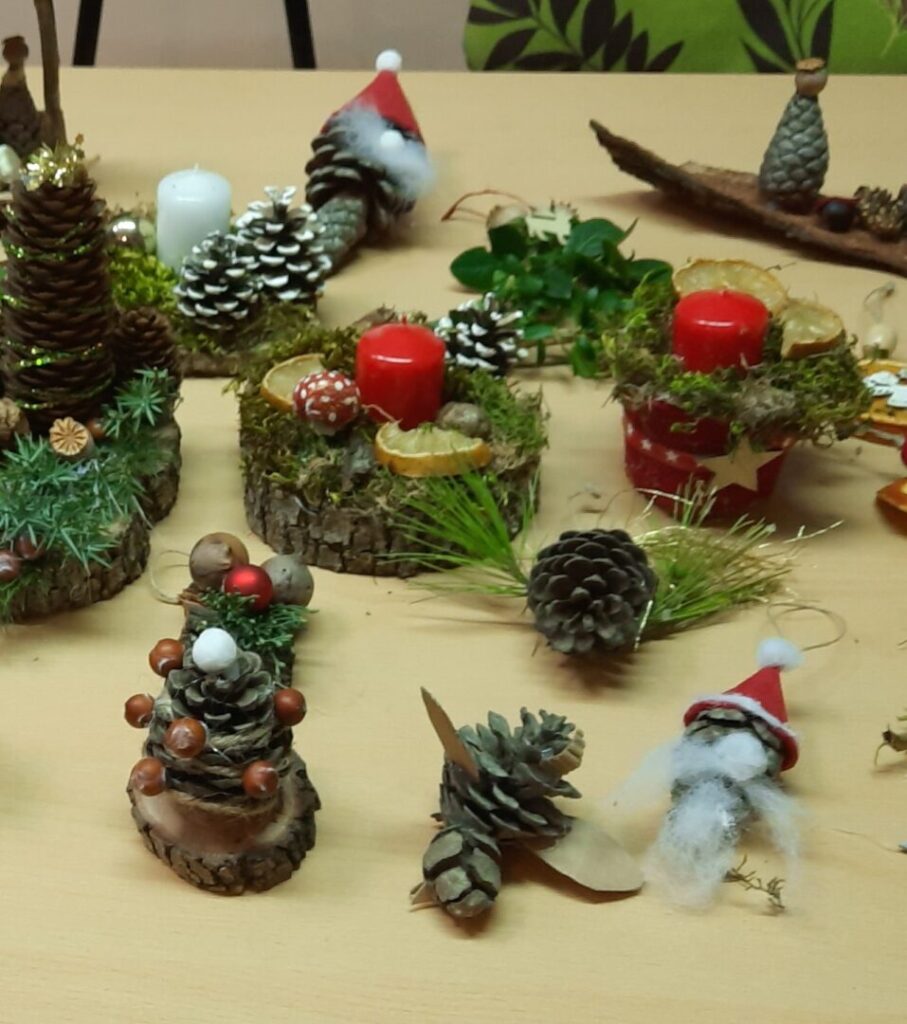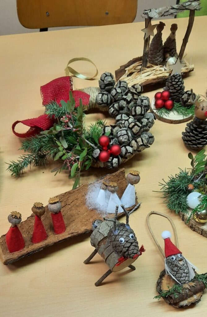 Oblikovali smo od prirodnih materijala jaslice, sovice, sobove, snjegoviće, aranžmane i vijence.