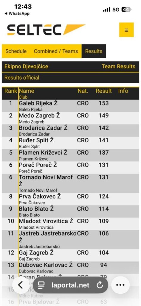 Nakon svega uslijedila je štafeta 4×100 gdje su naše cure u sastavu LOTA LAŠTRE, MARIJETA CAREV, KAROLINA FONSECA i MARINA PAVLAK odlicno trčale a konačni poredak je izvrsno četvrto mjesto i samo jedan bod nas je dijelio od trećeplasirane i brončane medalje.